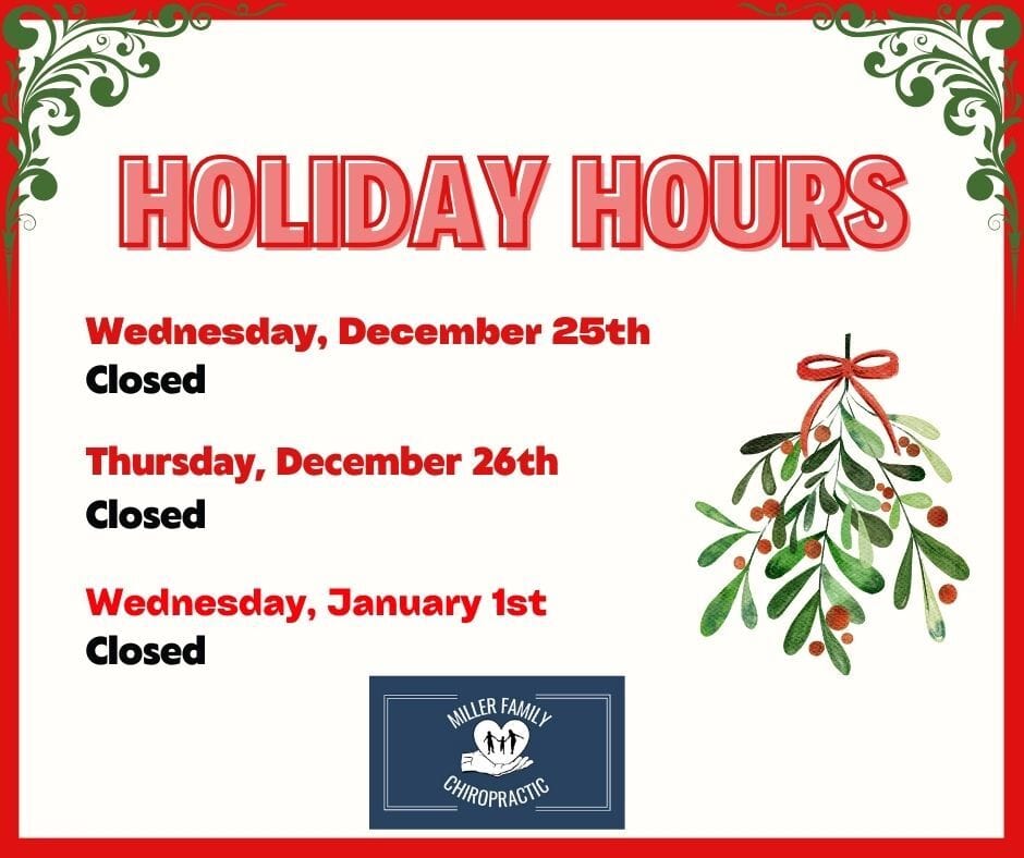 The office will be closed Wednesday, December 25th, Thursday December 26th, and Wednesday January 1st for the Holiday season. We wish you and your family a Merry Christmas and a Happy New Year!