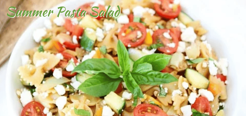 This easy and tasty summer pasta salad is filled with crisp summer veggies and delicate bowtie pasta. Recipe courtesy of Two Peas & Their Pod.