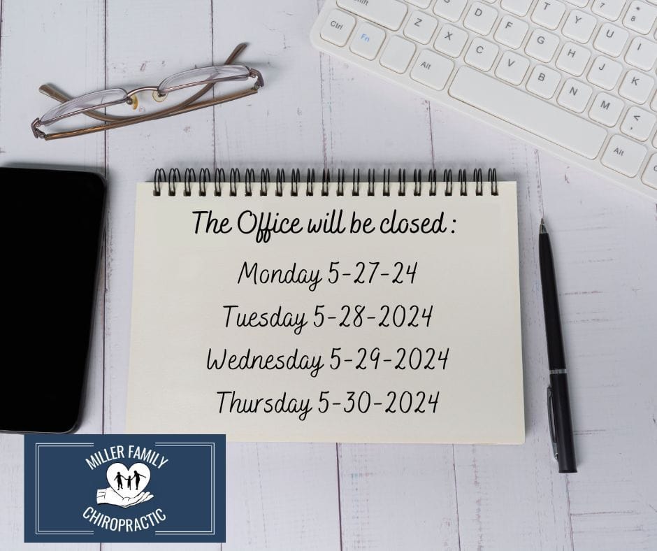 The office will be closed Monday May 27th through Thursday May 30th. We will be back with normal business hours Monday June 3rd! Please contact the front desk to schedule your next appointment! 785-825-4691