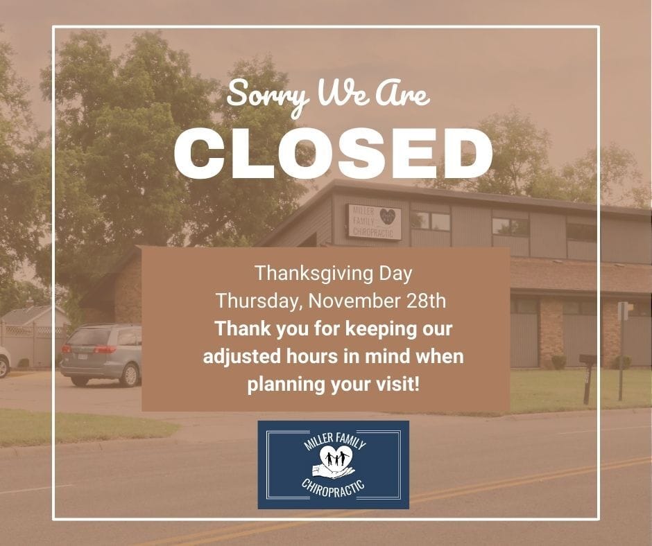 Misalignment of spinal bones can distort the communication from your brain to your stomach and keep it from working the way it was meant to. Dr. Miller checks your spine for vertebral subluxation and adjusts you when necessary. This ensures that your nerve/communication system works efficiently and allows your stomach to do its amazing work! So, enjoy the pie (in moderation) and don’t forget to include your amazing body in the blessings you count this Thanksgiving!